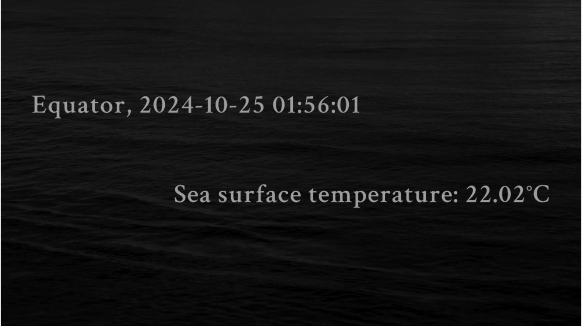 本展に組み込まれた映像作品では、海洋の温度上昇にフォーカスした環境問題を主題に、GPS情報とリアルタイムの海水温データを重ねながら、深い海中を漂うような映像体験を構成しました。