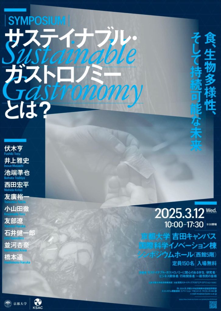 京都大学成長戦略本部が主催したシンポジウム「サステイナブル・ガストロノミーとは:食、生物多様性、そして持続可能な未来」において、広報物のクリエイティブディレクションを担当しました。